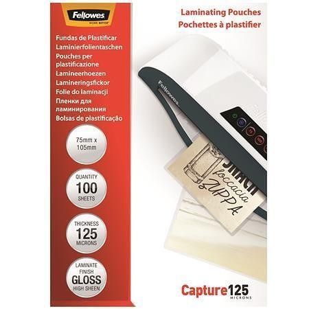 Laminovací fólie, lesklá, 125 micron, 75x105 mm, FELLOWES