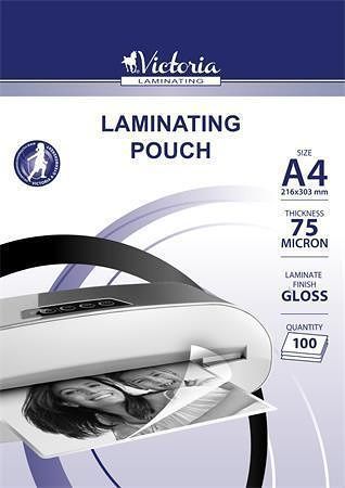 Laminovací fólie, lesklá, A4, 75 micron, VICTORIA