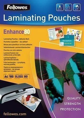 Laminovací fólie, lesklá, A4, 80 micron, samolepící, FELLOWES