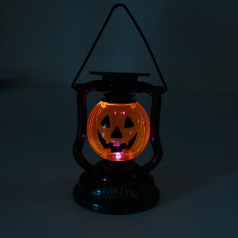 Halloweenské svítidlo na tu pravou Halloween párty! Plastová lucerna s dýní je funkční na 2 baterie typu AA (baterie nejsou součástí balení). Stačí jen přepnout přepínač ve spodní části lucerny. Lampička bliká a vydává strašidelné zvuky.