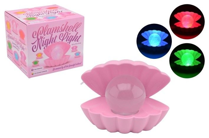 Lampička Mušle s perlou led měnící barvy – nechte se překvapit úžasnými barvami, které se v mušli mění. Nápájení USB. Výška mušle 15 cm. Na baterie: 1x CR2032 (je součástí balení)
