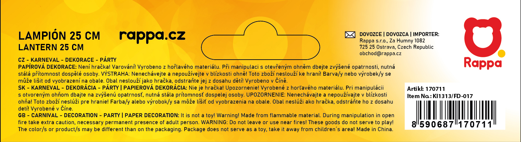 Barevný lampion v duhových barvách slouží jako senzační dekorace všech večírků a oslav! Lampion je vyroben z papíru. Tento parádní kousek ti nesmí na párty chybět!