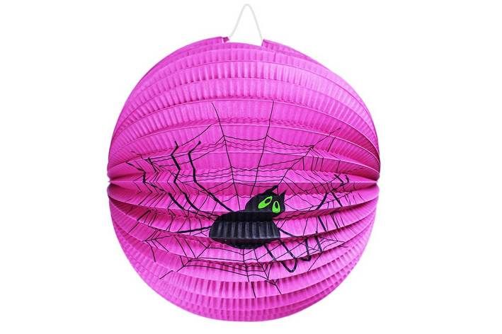 Fialový lampion s motivem pavouka slouží jako senzační dekorace všech Halloween párty! Kulatý lampion je vyroben z papíru a ve spodní části se nachází úchyt pro svíčku. Tento super kousek ti zaručí parádní atmosféru na tvém halloweenském večírku!
