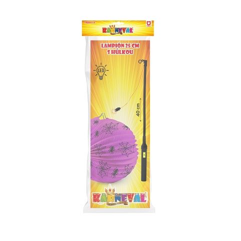 Lampion Halloween pavouci 25 cm se svítící hůlkou 40 cm
