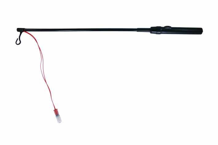 Přepnutím spínače na rukojeti hůlka svítí.