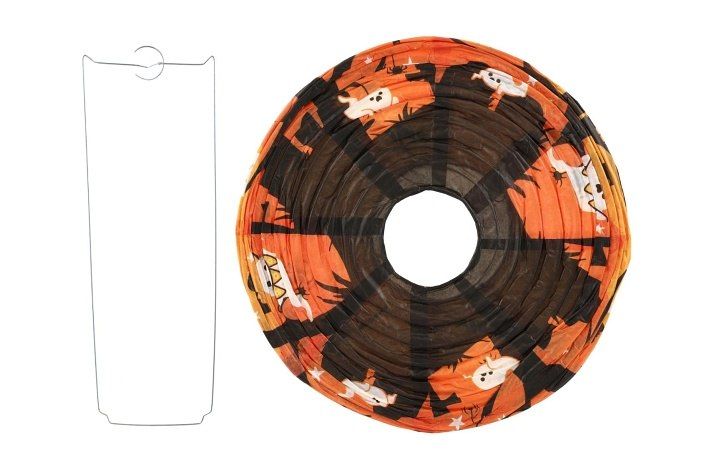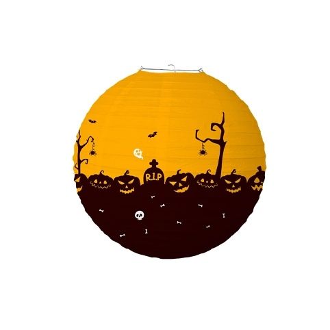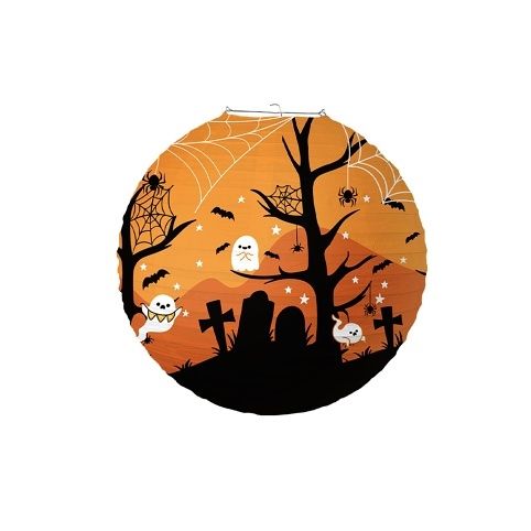 Dodejte své halloweenské výzdobě tu správnou atmosféru s tímto stylovým kulatým lampionem. Strašidelné motivy jako dýně, duchové, netopýři a hřbitovy zaujmou děti i dospělé a perfektně doplní každou tematickou oslavu nebo večerní procházku.