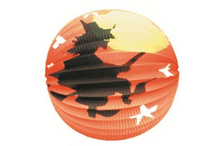 Lampion kulatý s čarodějnicí, 23cm