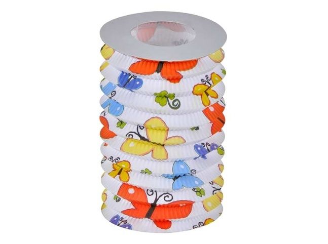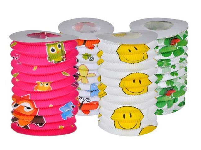 Papírový válcovitý lampión - barevný s obrázky - vhodná dekorace na party, lampiónový průvod, zahradní slavnost, karneval, oslavu narozenin nebo jen tak na zavěšení do dětského pokojíčku. Vyberte si svůj lampion a udělejte z běžného večera kouzelný. Lampion je bez hůlky a světýlka. Lampión má poutko na zavěšení. Motivy: sovy, smajlíci, čtyřlístky, motýlci Průměr lampiónu: 15 cm Materiál: papír, kov Uvedená cena je za 1 ks.