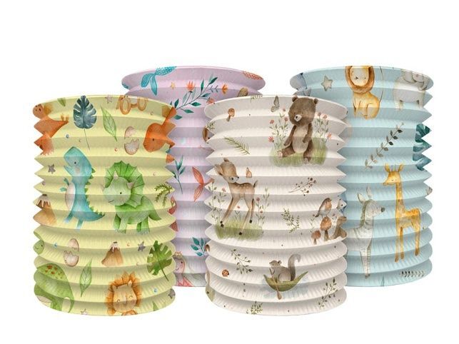 Papírový válcovitý lampión s dětskými motivy v mixu barev. Vhodný jako dekorace na party, lampiónový průvod, zahradní slavnost, karneval, oslavu narozenin nebo jen tak na zavěšení do dětského pokojíčku. Vyberte si svůj lampion a udělejte z běžného večera kouzelný. Lampión je z nehořlavého papír a má držák na svíčku nebo žárovku. Lampión je bez hůlky a světýlka. Lampión má poutko na zavěšení. Materiál: papír, kov Průměr lampiónu: 15 cm Barva: zelená, béžová, modrá, růžová Motivy: dinosauři, mořské panny, lesní zvířátka, exotická zvířátka Uvedená cena je za 1 ks.