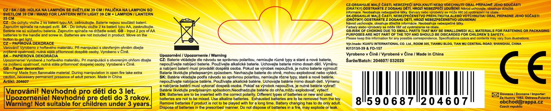 Lampion Halloween pavouk 25cm hůlka 50cm