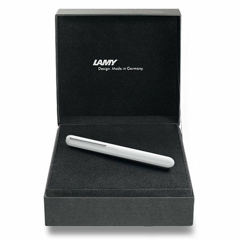 Psací nástroj, který je zosobněním všeho, co je tak typické pro značku Lamy - neotřelý, někdy až avantgardní design jdoucí ruku v ruce s unikátním technickým řešením. Rafinované technické zpracovaní otočného mechanismu pera, které brání potřísnění obleku inkoustem. Otočením dojde k vysunutí zlatého hrotu a zasunutí klipu do těla a naopak. Tělo lakované lesklým bílým lakem, v kombinaci s doplňky pokovenými platinou. Plnicí pero: otočný mechanismus vysunovací zasunovací klip bez víčka dvoubarevný hrot z 14karátového zlata (ryzost Au 585/1000) zdobený platinou Dodáváno modrou bombičkou a standardním konvertorem s pístem pro plnění pera inkoustem z lahvičky, v dárkové kazetě.