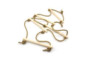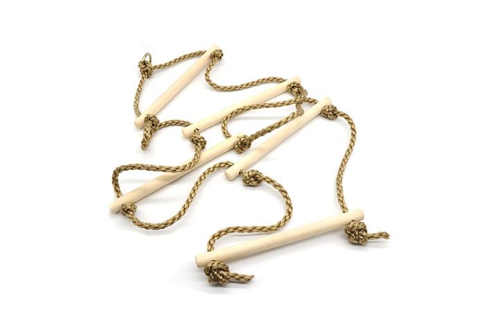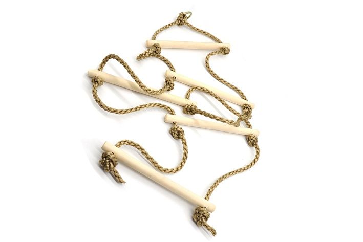 Lanový žebřík dřevěný. Délka 1,8 m. Délka úchopů 30 cm. PE lana o průměru 10 mm. Nosnost 80 kg.