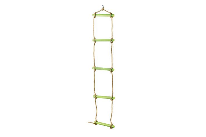 Lanový žebřík plastový. Šířka 30 cm. Délka 1,8 m. PE lana o průměru 10 mm. Nosnost 80 kg.