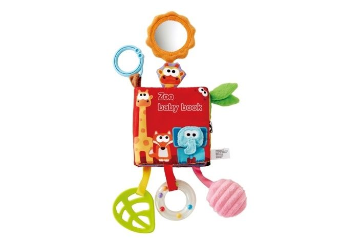 Látková knížka pro nejmenší děti z příjemného materiálu. Knížka ve veselých barvách. Výrobek pomáhá dítěti rozvíjet jemnou motoriku, zrak a sluch dítěte. Výrobek je vhodný pro děti od narození. Všechno nové materiály. Obsahuje polyesterová vlákna.