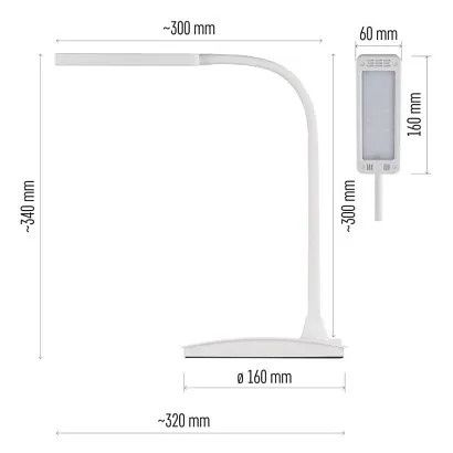 Parametry produktu příkon 6 W světelný tok 360 lm barva bílá stmívání ano materiál plast + kov délka přívodního kabelu 1,8 m barva světla teplá/neutrální/studená bílá napájecí zdroj 5 V/1 A napájecí zdroj součástí balení ano počet LED 24 teplota chromatičnosti 3 000/4 500/6 800 K rozměr 170 × 105 × 350 mm čip LED SMD energetická třída neuvádí se typ napájení síť integrovaná nabíjecí baterie ne USB port ne činitel stárnutí 75 % index podání barev (CRI) Ra >80 napětí 220–240 V obsah rtuti <0 mg počet spínacích cyklů 75 000 rychlost náběhu na 100 % 0 s účiník 0,85 životnost 30 000 hodin prodejní obal 1 ks, krabice krytí IP20 max. výkon neuvádí se patice (uchycení žárovky) neuvádí se