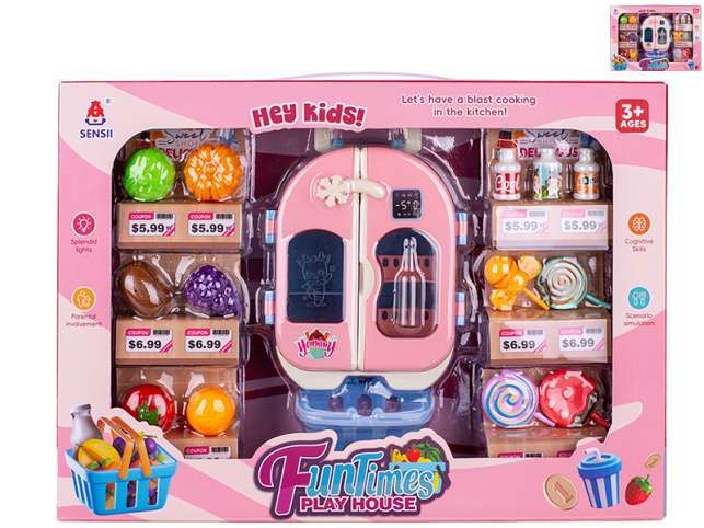 Lednice 14cm na baterie s doplňky se světlem 2barvy v krabičce