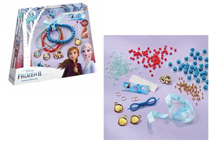 Vyrob si magické náramky.Můžeš vyrobit až 4 náramky se zlatými přívěsky.Balení obsahuje: materiál na výrobu čtyř náramků včetně stužky na utažení náramku a kreslený návod.Doporučeno pro děti od 5 let.
