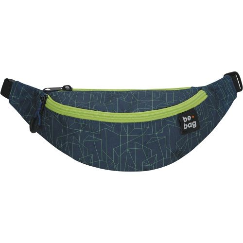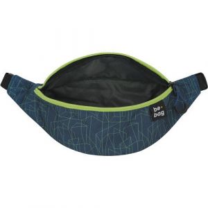 Ledvinka be.bag geo lines blue, obj. 2,5l, d34 x š10 x v11 cm, voděodolný, zapínání na zip, 2 přihrádky, nastavitený popruh se sponou, materiál: 600D polyester