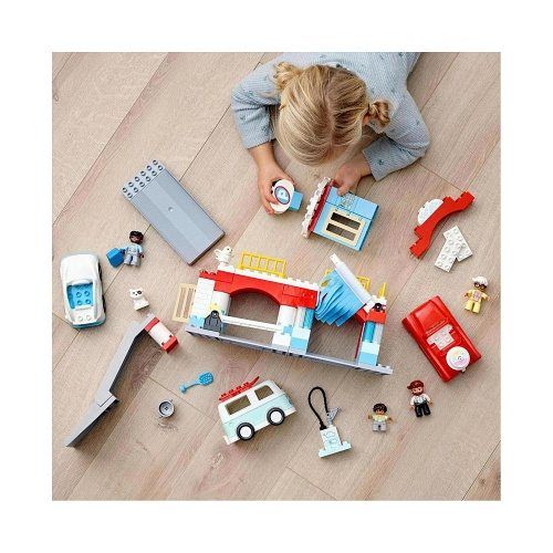 Hledáte vhodnou vzdělávací hračku s autíčky pro nejmenší děti? Pak nehledejte více, protože stavebnice LEGO® DUPLO® Garáž a myčka aut (10948) zaručeně potěší všechny automobilové nadšence.