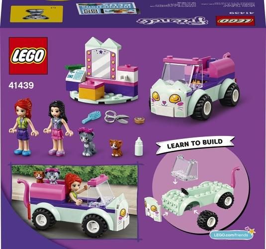 Pomozte malým dětem zdokonalit stavitelské dovednosti a starat se o zvířátka se stavebnicí Pojízdné kočičí kadeřnictví (41439). S touto jednoduchou sadou se děti mohou připojit ke kamarádkám LEGO® Friends Emmě a Mie a hledat společně s nimi kočky, které potřebují kadeřnickou péči. V jejich salónu jim snadno dopřejí maximální komfort.
