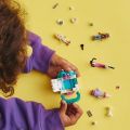 Kreativní děti od 6 let si s pojízdnou prodejnou bubble tea od LEGO® Friends (41733) užijí spoustu zábavy. Vozík s bubble tea lze připojit k parádnímu modelu elektrické koloběžky. Otevřete střechu a odhalte interiér, kde mohou děti připravovat bubble tea