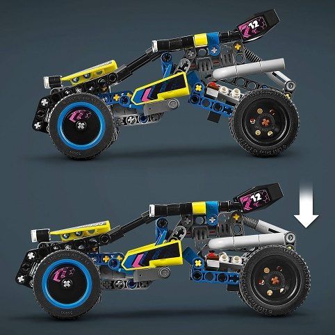 Děti od 8 let si s touto úchvatnou stavebnicí vozidla užijí pořádnou legraci. Procvičí si stavitelské dovednosti při skládání modelu LEGO® Technic (42164) Terénní závodní bugina – ale u stavění zábava nekončí! Po sestavení model otestují. Bugina se pyšní