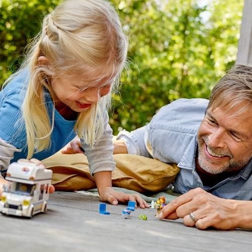 S touto sadou Prázdninový karavan (60283) od LEGO® City se mohou kluci a holky vydat, kamkoli je napadne. Obytný vůz je nabitý realistickými funkcemi pro kreativní hraní, včetně vybaveného interiéru s kuchyňkou a místy na spaní. S minifigurkou maminky a tatínka a rozkošnou figurkou dítěte je vše připraveno na nekonečná dobrodružství při kempování s rodinou.