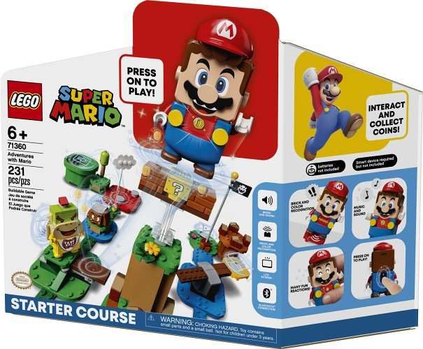 Děti se mohou díky této stavebnici Dobrodružství s Mariem – startovací set (71360) od LEGO® Super Mario™ spojit se svou oblíbenou postavou v reálném světě. Sada obsahuje LEGO figurku Maria s funkcí okamžité reakce prostřednictvím LCD obrazovky a reproduktorů. Hráči získávají virtuální mince na trase mezi startovním potrubím a cílovým sloupkem. Figurka LEGO Maria se cestou točí a chodí po mracích, skáče na kostky s otazníkem a bojuje s figurkami Goomby a Bowsera Jr. Kombinujte kostky různými způsoby a vytvářejte tak nové úrovně.
