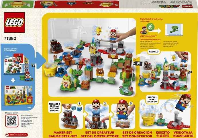 Malí stavitelé mohou se vzrušující stavebnicí Set pro tvůrce – mistrovská dobrodružství (71380) upravovat svůj LEGO® Super Mario™ Startovací set a rozšiřovací sety, a vytvářet tak jedinečné úrovně. Nechybí zvláštní stroj pro výběr odměn, které nabízí časo
