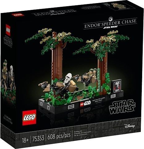 Zachyťte dynamickou akci vzrušující scény z filmu Star Wars: Návrat Jediho se stavebnicí Honička spídrů na planetě Endor™ – diorama (75353). Součástí stavebnice jsou 3 minifigurky LEGO (princezna Leia, Luke Skywalker a průzkumný voják), 2 spídrové motorky
