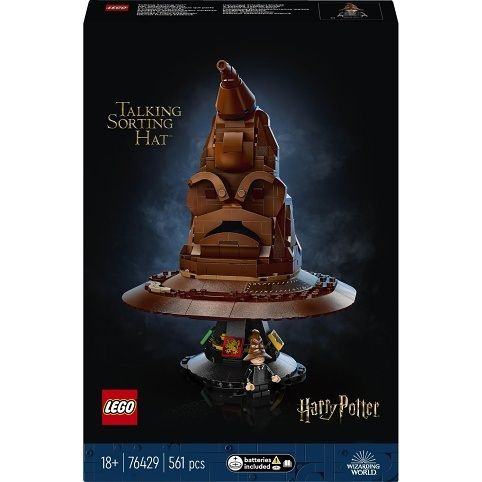 Ponořte se do stavění okouzlujícího modelu Mluvící Moudrý klobouk (76429). Jedná se o zcela první stavebnici z řady LEGO® Harry Potter™ se zvukovou kostkou, která tento model přivádí k životu. Dotkněte se špičky Moudrého klobouku nebo si ho položte na hla
