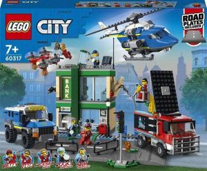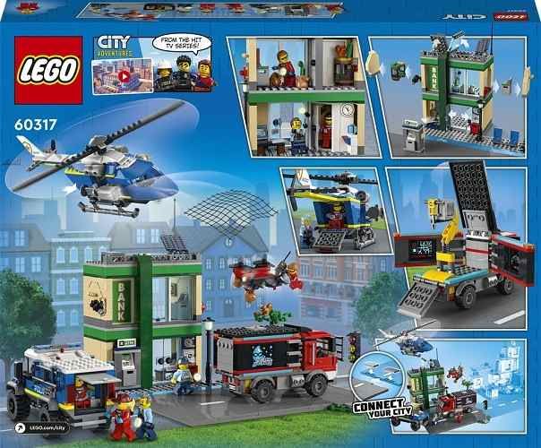 • Model bohatý na funkce – Stavebnice Policejní honička v bance (60317) od LEGO City je určena dětem, které zbožňují akční hraní, ale také všem fanouškům seriálu LEGO City Dobrodružství • Co se ukrývá v krabici? – Vše, co děti potřebují k sestavení multifunkční budovy banky, loupežného vozidla zlodějů, policejního vrtulníku a policejní dodávky, a k tomu navíc 6 minifigurek, včetně 5 postav z LEGO® City TV • Spousta funkcí – Děti mohou rozložit vůz zločinců, který v sobě ukrývá zdvižnou pracovní plošinu se sbíječkou, vybourat části zdi banky a pálit z vystřelovače sítě vrtulníku • Dárek ke každé příležitosti – Tato stavebnice LEGO® poslouží jako narozeninový, vánoční nebo jakýkoli jiný dárek pro malé stavitele od 7 let • Výstavní modely – Po sestavení měří vůz zločinců přes 8 cm na výšku, 14 cm na délku a 6 cm na šířku • Chybět nesmí doplňky pro minifigurku LEGO® – Tato policejní sada nabízí celou řadu zábavných doplňků pro kreativní hraní, včetně dílků v podobě bankovek, baterky svítící ve tmě, telefonu a pout • Samozřejmostí je interaktivní digitální návod na stavění – Díky aplikaci s návody LEGO® pro chytré telefony a tablety si děti mohou přibližovat, otáčet a prohlížet model ze všech úhlů • Pomozte dětem s rozvojem tvořivosti – Děti mohou hravým způsobem získávat sebevědomí a rozvíjet klíčové dovednosti pro život • Testování kvality – Již od roku 1958 splňují všechny kostky LEGO® striktní oborové standardy, díky čemuž jsou konzistentní, kompatibilní a zaručují zábavné hraní • Bezpečnost nade vše – Kostky a dílky LEGO® pouštíme na zem, zahříváme, drtíme, kroutíme a analyzujeme, abychom zajistili, že splňují striktní globální bezpečnostní standardy