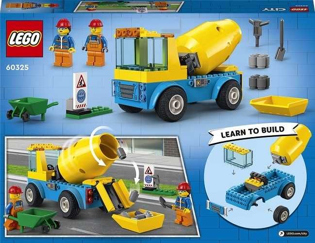 • Zábava na stavbě – S modelem Náklaďák s míchačkou na beton (60325) od LEGO® City bude stavění ještě zábavnější. Inspirativní sada je určena dětem od 4 let a nabízí víc než jen beton • Co se ukrývá v krabici? – Vše, co děti potřebují k sestavení náklaďáku s míchačkou na beton od LEGO® City, a k tomu navíc kolečko, sbíječku, dopravní značku a 2 minifigurky dělníků • Realistické hraní – Náklaďák s míchačkou na beton nadchne otáčející se míchačkou, z jejíhož vyklápěcího nástavce na lití v zadní části vycházejí dílky představující beton – přesně jako ve skutečnosti • Zábavný model pro děti – Vhodné jako narozeninový nebo jakýkoli jiný dárek pro holky a kluky ve věku od 4 let • Dobře přenosný a skladný model – Po sestavení měří náklaďák s míchačkou na beton přes 9 cm na výšku, 14 cm na délku a 7 cm na šířku • Stavebnice LEGO® City pro děti od 4 let – Tato sada pro děti od 4 let obsahuje začátečnickou kostku LEGO, obrázkový návod na stavění a digitální pokyny, které jsou k dispozici ve speciální aplikaci LEGO • Samozřejmostí je interaktivní návod na stavění – Díky bezplatné aplikaci s návody LEGO® pro chytré telefony a tablety si děti mohou přibližovat, otáčet a prohlížet model ze všech úhlů • Rozvoj dětských kreativních dovedností – Skvělá vozidla LEGO® City dětem pomáhají získávat sebevědomí a rozvíjet klíčové životní dovednosti s pomocí realistických modelů a zábavných postav, které inspirují k otevřenému kreativnímu hraní • Hračky v prémiové kvalitě – Již od roku 1958 splňují všechny kostky LEGO® nekompromisní oborové standardy, díky čemuž jsou dílky konzistentní, kompatibilní a zaručují zábavné hraní • Bezpečnost na prvním místě – Kostky a dílky LEGO® pouštíme na zem, zahříváme, drtíme, kroutíme a analyzujeme, abychom zajistili, že splňují striktní globální bezpečnostní standardy