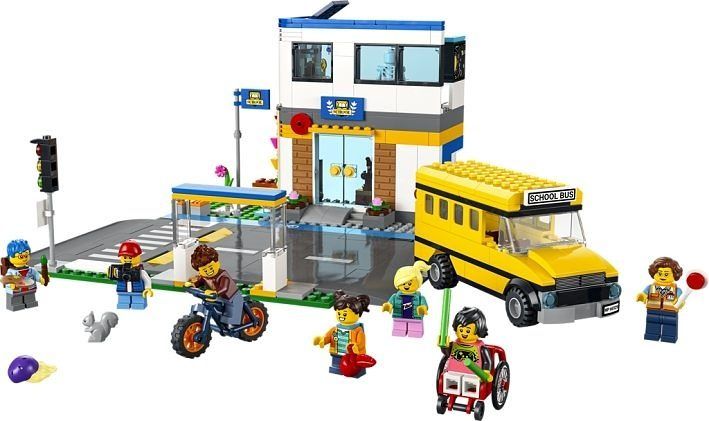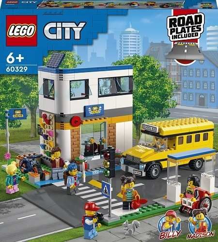 • Školní sada z LEGO® City pro děti od 6 let – Stavebnice Školní den (60329) od LEGO City je doslova nabitá detaily pro kreativní hraní • Co se ukrývá v krabici? – Vše, co děti potřebují pro sestavení 2patrové školní budovy se školním dvorem, modelem školního autobusu, zastávky, kola a 7 minifigurkami, včetně 2 postav z LEGO® City TV, a k tomu navíc figurku veverky • Kreativní hraní pro děti – Školní sada nabízí 2 místnosti nabité vybavením pro kreativní hraní, včetně Bunsenova kahanu, kostry pro výuku anatomie, lavic, tabule, kytary, bicí soupravy a mikrofonu • Dárek ke zvláštní příležitosti – Tato stavebnice LEGO® poslouží jako narozeninový, vánoční nebo jakýkoli jiný dárek pro malé stavitele od 6 let • Školní sada – Po sestavení měří model přes 15 cm na výšku, 27 cm na šířku a 25 cm do hloubky • Součástí jsou doplňky pro LEGO® minifigurky – Školní sada obsahuje zábavné doplňky pro minifigurky, včetně kamery, helem, batohů, kytary a bicích paliček • Chybět nesmí interaktivní digitální návod na stavění – Díky aplikaci s návody LEGO® pro chytré telefony a tablety si děti mohou přibližovat, otáčet a prohlížet model ze všech úhlů • Učení hrou – Děti mohou hravým způsobem získávat sebevědomí a rozvíjet klíčové dovednosti pro život • Silný důraz na kvalitu – Již od roku 1958 splňují všechny kostky LEGO® striktní oborové standardy, díky čemuž jsou konzistentní, kompatibilní a zaručují zábavné hraní • Bezpečnost na prvním místě – Kostky a dílky LEGO® pouštíme na zem, zahříváme, drtíme, kroutíme a analyzujeme, abychom zajistili, že splňují striktní globální bezpečnostní standardy