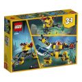 Podvodního robota s ohebnými klouby, laděného do žluté, šedé a černé barvy si mohou kluci poskládat z této kvalitní stavebnice Lego. Doplnit ho mohou pomocí vyhlídkové kopule s červeným okem, mechanickou rukou s vrtákem, drápem a drapákem, také pomocí zátěžové nádrže a velkými robotickými chodidly, se kterými se snadno pohybuje po mořském dně. S tímto futuristickým robotem se děti nemusí bát v hlubinách oceánu. Obezřetní musí být ale před rejnokem s nebezpečným ocasem.