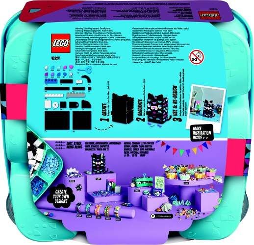 • Odměňte mladé kreativní duše sadou Krabička tajemství (41924) od LEGO® DOTS. Obsahuje krabičku se 2 tajnými přihrádkami, organizér a řadu zdobítek. • Zjevná osobitost! Při zdobení krabičky tajemství budou děti rozvíjet své návrhářské schopnosti, ať už se nechají inspirovat ukázkami vzorů na obalu nebo vymyslí vlastní neotřelý styl. • Přiložená zdobítka skvěle poslouží při vytváření vlastní designů. Děti mohou použít dílky i z ostatních sad, třeba ze sáčku s DOTS doplňky z 3. série (41921) • Tuto tvořivou hračku si zamiluje každá kreativní duše. Užitečný držák představuje skvělý a zábavný dárek či kreativní odměnu pro holky i kluky ve věku od 6 let. • Originální skrýš na nápady! Krabička tajemství měří 12 cm na výšku, 7 cm na šířku a 7 cm do hloubky – to jsou ideální rozměry pro ukrytí jakéhokoliv tajemství. • Rozbalte sadu a pusťte se do sestavení tajemného držáku. Díky jednoduchému návodu to bude hračka. Pohodový úklid zbývajících dílků zajistí přiložený organizér. • Darujte dětem kreativní a praktický dárek v podobě sady od LEGO® DOTS. Tato suprová krabička tajemství ve tvaru kočky nabízí neomezené tvůrčí možnosti, které dětem pomohou v rozvoji fantazie a sebedůvěry ve vlastní kreativitu. • LEGO® DOTS nabízejí otevřené a kreativní hraní a vybízejí děti k tomu, aby se projevily tvorbou a zdobením vlastních šperků nebo bytových doplňků. Zábava a LEGO hraní se tak dostává do rukou i těm, kteří se třeba s těmito hračkami zatím nesetkali. • Již od roku 1958 splňují LEGO® dílky striktní normy, aby byly konzistentní, kompatibilní a umožňovaly spolehlivé spojování a rozebírání. • LEGO® dílky pouštíme na zem, zahříváme, drtíme, kroutíme a analyzujeme, abychom zajistili, že splňují přísné globální bezpečnostní standardy.