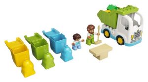.Tvořivá vzdělávací stavebnice pro nejmenšíHračky LEGO DUPLO dětem nabízí neomezenou zábavu, možnost sebevyjadřování a učení hrou. Díky stavebnicím DUPLO mohou být rodiče u významných vývojových milníků svých dětí, které prožijí, zatímco si budou vychutnávat dlouhé hodiny hraní. „• Všestranná stavebnice na motivy popelářů, která zábavnými aktivitami podněcuje hravé učení. • Ve stavebnici naleznete 2 DUPLO® figurky, popelářský vůz, 3 pytle, 3 popelnice a smeták. • Zatímco budou děti třídit odpadky, naučí se poznávat barvy a procvičí svou jemnou motoriku. • Skvělý způsob, jak s dětmi od 2 let společně prožívat vývojové milníky. • Stavebnici lze snadno nakombinovat s ostatními hračkami LEGO® DUPLO®. • Součástí návodu na stavění je také zábavný obrázkový příběh. • Všechny stavebnice LEGO® DUPLO® vedou děti k nápaditému hraní a podporují jejich vývoj. • Stavebnice LEGO® DUPLO® splňují nejvyšší oborové standardy kvality. • Kostky a dílky LEGO® DUPLO® splňují přísné normy týkající se bezpečnosti dětí.“
