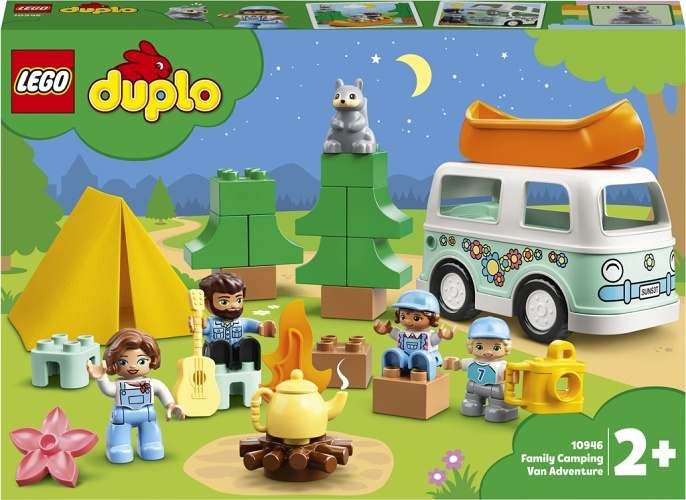"Dobrodružství v rodinném karavanu (10946) z řady LEGO® DUPLO® Město nabízí spoustu aktivit a příležitostí k učení, které si mohou děti užívat společně s rodiči. Hraní příběhů s rodinkou v přírodě > Vydejte se kempovat do lesa se svým malým stavitelem a užijte si spoustu zábavných dobrodružství s celou rodinou. Do karavanu, jehož vrchní část lze odklopit pro snadný přístup, se vlezou všechny 3 milé figurky. Vybavení můžete naložit na střechu, takže si při opatrném řízení směrem k tábořišti užijete spoustu legrace. Látkový stan určitě postavíte levou zadní. K dispozici budete mít také kánoi, s níž se můžete vypravit na řeku, a ohniště, kde uvaříte čaj a zazpíváte si písničky v doprovodu kytary. Nezapomeňte krásné rodinné okamžiky zvěčnit pomocí foťáku! Tvořivá vzdělávací stavebnice pro nejmenší > Hračky LEGO DUPLO dětem nabízí neomezenou zábavu, možnost sebevyjadřování a učení hrou. Díky stavebnicím DUPLO mohou být rodiče u významných vývojových milníků svých dětí, které prožijí, zatímco si budou vychutnávat dlouhé hodiny hraní." „• Pestrobarevná stavebnice na motivy kempování, s níž si můžete přehrávat spoustu rodinných aktivit. • Obsahuje 4 DUPLO® figurky, karavan, látkový stan, kánoi a doplňky. • Děti budou rozvíjet jemnou motoriku a dozví se, jak důležitý je čas strávený s rodinou. • Skvělý způsob, jak s dětmi od 2 let společně podnikat rodinné aktivity. • Stavebnici lze snadno nakombinovat s ostatními hračkami LEGO® DUPLO®. • Součástí návodu na stavění je také zábavný obrázkový příběh. • Všechny stavebnice LEGO® DUPLO® vedou děti k nápaditému hraní a podporují jejich vývoj. • Stavebnice LEGO® DUPLO® splňují nejvyšší oborové standardy kvality. • Kostky a dílky LEGO® DUPLO® splňují striktní normy týkající se bezpečnosti dětí.“