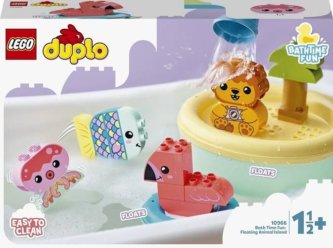 • Všestranná hračka do koupele – Sada Legrace ve vaně: Plovoucí ostrov se zvířátky (10966) z řady LEGO® DUPLO® Moje první je všestranná, snadno omyvatelná stavebnice s ostrovem, který lze použít také jako úložné řešení • Stavějte, hrajte si a učte se – Ve stavebnici najdete rybu, chobotnici, lva a plameňáka. Plovoucí ostrov lze rozdělit na 2 části, které také plavou. Spodní část pak můžete použít i při hraní mimo vanu • Nápadité hraní – Nejmenší stavitelé si poskládají jednoduché modely zvířátek a pak si užijí spoustu zábavy na tropickém ostrově, přičemž budou rozvíjet své dovednosti • Skvělý dárek pro předškoláky – Darujte tuto tvůrčí stavebnici k narozeninám či jakékoliv jiné příležitosti dětem od 18 měsíců • Rozpojitelný ostrov – Ostrov měří přes 8 cm na výšku a 22 cm v průměru a lze jej rozdělit na 2 části, které plavou • Učení hrou – Všechny stavebnice LEGO® DUPLO® byly odborníky navrženy tak, aby obsahovaly poutavé příběhy, pestré barvy, rozmanité postavy a celou řadu fascinujících detailů, které vašemu dítěti pomůžou udělat VELKÝ první krok na cestu životem • Konzistentní kvalita – Dílky LEGO® DUPLO® splňují ty nejvyšší oborové standardy, takže si můžete být jisti, že je pro malé ručky snadné kostky uchopit, umístit a rozpojit – a je tomu tak již od roku 1969 • Bezpečnost na prvním místě – Kostky a dílky LEGO® DUPLO® pouštíme na zem, zahříváme, drtíme, kroutíme a analyzujeme, abychom zajistili, že splňují striktní globální bezpečnostní standardy