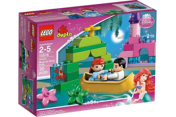 Připrav pro Ariel a šarmantního prince Erika kouzelnou vyjížďku na loďce! Je slunečný den, tak jim dopřej plavbu ve zlaté loďce kolem krásného růžového hradu. Přehraj si nezapomenutelné scény z animovaného filmu Disney! Hraj si a stav z LEGO® DUPLO® kostek a květin v pastelových barvách!