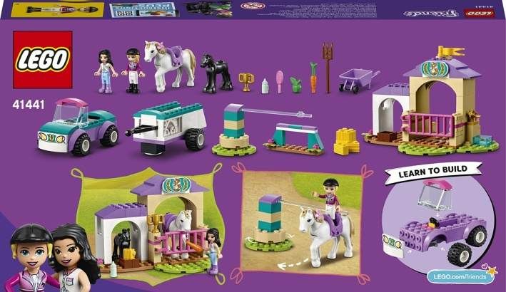 "Dopřejte dětem možnost rozvíjet své stavitelské dovednosti a zároveň objevovat lásku ke zvířatům prostřednictvím sady Auto s přívěsem a výcvik koníka (41441) od LEGO® Friends. Součástí barevného modelu ranče je auto, přívěs, stáje, kolečko, 2 minipanenky a figurky koníka a hříbátka. Letmý start > Tato sada z edice 4+ obsahuje detaily, které malé stavitelky zaručeně vtáhnou do hry. Každý ze sáčků s kostkami uvnitř krabice obsahuje část modelu a postavičku, takže si děti mohou hrát ještě před dokončením stavění. Tento kreativní dárek obsahuje také 2 začátečnické kostky, díky kterým bude sestavení auta a stájí hračka. Skvělá zábava pro celou rodinu > Stavebnice s označením 4+ představují skvělý způsob, jak mohou dospěláci s dětmi sdílet zábavu při stavění. Jednoduchý obrázkový návod je ideální volbou pro děti, které ještě neumí číst. Využít lze také digitální pokyny Instructions PLUS. Ty jsou k dispozici v aplikaci s LEGO návody a usnadňují proces stavění díky funkcím přiblížení a otáčení a průhledovému režimu. Děti si zároveň mohou model uložit a kdykoli se k němu vrátit." „• Naučte děti stavět a dopřejte jim pořádnou porci tvořivé zábavy při hraní se zvířátky. • Zábavný dárek pro děti se 2 minipanenkami a 2 figurkami zvířat. • Model stájí obsahuje řadu nápaditých prvků, které děti kreativním způsobem zabaví na celé hodiny. • Přímočará hračka, která představuje skvělý dárek k narozeninám, Vánocům či jiné příležitosti. • Sada nabízí kompaktní rozměry, díky kterým je možné si s modely hrát kdykoliv a kdekoliv. • Stavebnice 4+ obsahují intuitivní návody vhodné i pro stavitele začátečníky. • Posuňte stavitelský zážitek na vyšší úroveň díky bezplatným pokynům Instructions PLUS. • Uveďte malé stavitelky do zábavného světa oblíbených LEGO® stavebnic. • Kvalitní a odolné LEGO® stavebnice budou dětem přinášet radost řadu let. • Oblíbené LEGO® sady splňují přísné bezpečnostní standardy, takže zaručují kvalitní herní zážitek.“