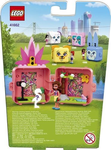 • Olivia a její plameňákový boxík (41623) od LEGO® Friends je přenosná stavebnice z prostředí džungle v zářivém obalu připomínajícím plameňáka. Přenosná zábava z prostředí džungle pro děti, které milují zvířata! • Obsahuje populární LEGO® Friends minipanenku Olivie, figurku plameňáka v 1 ze 4 různých barev, figurku žáby, sestavitelnou jezerní scenérii, fotoaparát, meloun a plátek melounu. • Děti si mohou dílky z boxíku vytáhnout a hrát si s nimi nebo si přenosnou sadu vzít kamkoliv s sebou. • Ideální překvapení nebo dárek ke speciální příležitosti nebo narozeninám pro děti od 6 let, které mají rády kompaktní zvířecí sady. • Kompaktní boxík měří přes 11 cm na výšku a 8 cm na šířku. Díky látkovým pírkům a roztomilému obličeji plameňáka, které jsou novinkou pro leden 2021, jím lze ozdobit například psací stůl. • Ukažte svým ratolestem svět městečka Heartlake, místa kreativní zábavy a úžasných přátelství, kde děti objeví postavy, které jsou stejné jako ony samy – a kde jsou všichni vítáni! • Kostky použité v této nové LEGO® stavebnici splňují ty nejpřísnější standardy tak, aby byly kompatibilní a umožňovaly hladké spojování a rozebírání – a tak tomu bylo vždy již od roku 1958. • Stavebnice LEGO® Friends jsou testovány tak, aby splňovaly ty nejpřísnější globální bezpečnostní standardy.