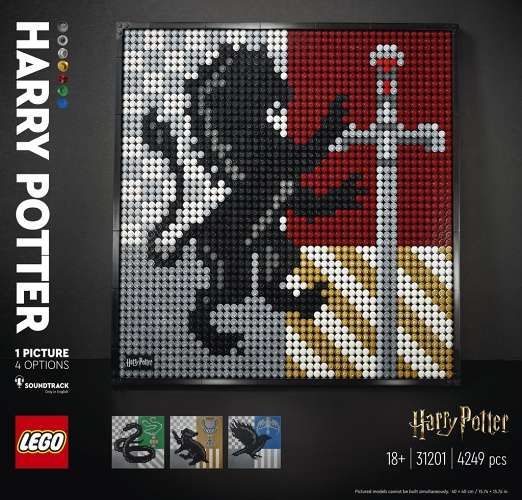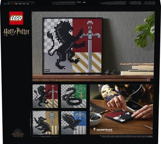 • Projev svou lásku k Bradavicím prostřednictvím sady Harry Potter™ – Erby bradavických kolejí (31201) z řady LEGO® Art, se kterou si můžeš postavit 1 ze 4 erbovních znaků bradavických kolejí. • Odpočiň si od každodenního shonu u této LEGO® sady čítající 4249 dílků, 9 podložek k zavěšení na zeď, exkluzivní logo Harry Potter™, rámeček z kostek, jedinečný závěsný dílek a nástroj pro přestavování. • Tato sada ti umožní ponořit se do tvůrčího projektu inspirovaného světem Harryho Pottera, u kterého si odpočineš a načerpáš energii. Atmosféru doladí exkluzivní hudební doprovod, kde se také dozvíš zajímavé informace o jednotlivých kolejích. • Oslav svou vášeň pro kouzla a dobrodružství a postav a vystav si tuto jedinečnou mozaiku. Sadu si můžeš pořídit hned několikrát a postavit si erby všech čtyř bradavických kolejí. • Strana tohoto jedinečného kousku měří 40 cm. Sada nabízí 4 různé možnosti a představuje skvělou odpočinkovou aktivitu pro všechny fanoušky série Harry Potter™, kteří mají rádi tvůrčí projekty. • Kvalitně zpracovaná brožurka s návodem na stavění tě provede celým projektem a pomůže ti zbavit se stresu při práci na uměleckém díle z LEGO® kostek. • Výtvory ze sad LEGO® Art pro dospělé jsou vhodné k pověšení na zeď nebo vystavení na poličce. Nabízejí obohacující stavitelský zážitek, při němž si dospěláci mohou odpočinout a ponořit se do tvoření. • Již od roku 1958 splňují LEGO® dílky striktní normy, aby byly konzistentní, kompatibilní a umožňovaly spolehlivé spojování a rozebírání. • LEGO® dílky pouštíme na zem, mačkáme, kroutíme, zahříváme, ohýbáme, škrábeme a natahujeme, abychom s jistotou věděli, že i sada Harry Potter™ – Erby bradavických kolejí odpovídá těm nejpřísnějším bezpečnostním normám.