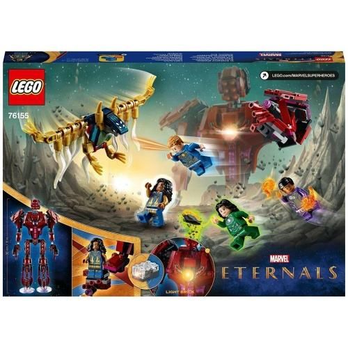 Zkombinujte všechny zábavné prvky z Marvelova filmu Eternals v jedné úžasné sadě LEGO®. Stavebnice Ve stínu Arishema (76155) proti sobě postaví 4 Eternaly, Devianta a Celestiala v souboji superhrdinů. Prožijte znovu akci z filmů od Marvelu > Děti mohou spojit síly se 4 Eternaly a porazit společně Devianta. Eternalové mají parádní schopnosti: Ajak dokáže jako jediná komunikovat s Celestialy, mocnými mimozemskými bytostmi; Sersi umí přeměnit hmotu na cokoli, co si zamane; Ikaris má nadlidskou sílu a Kingo dokáže pracovat se zemskou energií. Sada obsahuje také pohyblivou figurku Celestiala, která v ruce udrží minifigurku Eternala. A pokud hračku kupujete pro fanouška minifigurek, upozorňujeme, že tato sada LEGO jako jediná obsahuje minifigurky Ajak a Kingoa! Sady na motivy filmu Eternals studia Marvel > Stavebnice na motivy filmu Eternals od LEGO Marvel jsou jedinečné a obsahují parádní postavy, které podněcují dětskou představivost a provedou je nekonečným vesmírem zábavného hraní.