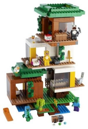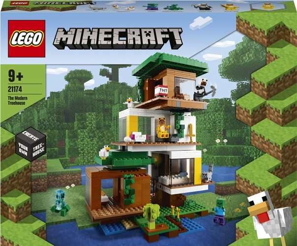"Stavebnice Moderní dům na stromě (21174) od LEGO® Minecraft™ nabízí velký, propracovaný a extrémně všestranný model, který spolehlivě zabaví hráče Minecraftu a všechny děti, které se rády věnují kreativnímu stavění. Domek na stromě ze světa Minecraft, který lze přestavovat donekonečna > Děti si postaví 4 velmi odlišné místnosti – kuchyň, knihovnu, pracovnu a ložnici – a hotový model rozšíří o autentické doplňky ze světa Minecraft (od nábytku a ložního prádla až po nástroje a TNT). Sadu lze donekonečna přestavovat a objevovat tak ničím neomezené možnosti kreativního hraní. Jednotlivé pokoje dokonce vůbec nemusí být připojeny ke stromu. Stavebnice se ideálně hodí pro děti, jejichž představivost se nespokojí s tradičními domečky pro panenky." „• Moderní domek na stromě je působivý model z řady LEGO® Minecraft™, který lze neustále přestavovat. • Obsahuje nabitého Creepera, zombie, kočku, kuře, a k tomu navíc pandí a ocelotí skiny. • Nekonečné možnosti kreativního stavění a hraní. • Ideální pro všechny fanoušky hry Minecraft™ a stavitele od 9 let. • Stavebnice, která má přes 29 cm na výšku, přináší zábavu v epickém měřítku. • Mezi doplňky patří nástroje, nábytek a TNT. • Stavebnice LEGO® Minecraft™ nabízejí hráčům nový způsob, jak si vychutnat jejich oblíbenou hru. • LEGO® stavebnice splňují přísné oborové standardy kvality. • LEGO® dílky splňují náročné globální bezpečnostní standardy.“