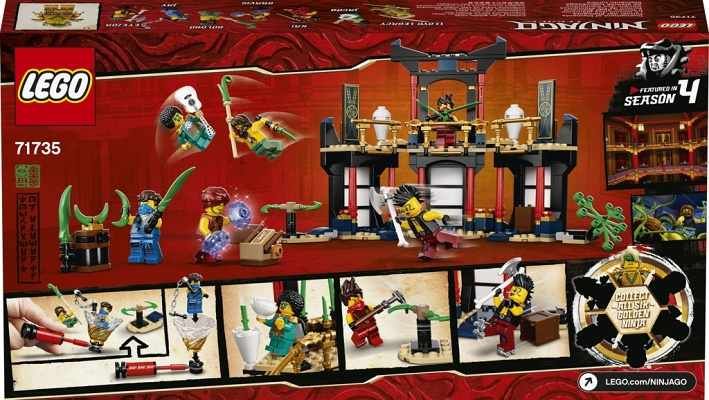 • Stavebnice LEGO® NINJAGO® Turnaj živlů (71735) z edice Legacy obsahuje propracovaný a interaktivní model chrámu, ve kterém mohou děti absolvovat nindžovský výcvik a uspořádat souboje o vzácné odměny. • V této nindža sadě nechybí 7 minifigurek: nindžové Jay, Kai, legendární Lloyd, mistři živlů Bolobo, Gravis a Jacob, a zlý Eyezor ze 4. řady televizního seriálu. • Model nindžovského chrámu obsahuje bojovou plošinu a platformu pro výcvik boje se zbraní. Skvělý je také spinner a kolekce sběratelských nefritových čepelí. • Obsahuje zlatou sběratelskou minifigurku Lloyda na oslavu 10 let hraček NINJAGO®. • Speciální zlaté sběratelské minifigurky najdete i v dalších NINJAGO® sadách: Odstřelovač balvanů (71736), Kaiův červený bourák (71737) a Zane a bitva s titánskými roboty (71738). • Tato stavebnice se 283 dílky a sběratelskými postavami představuje zábavný dárek nebo skvělou odměnu pro holky a kluky od 6 let, kteří zbožňují svět NINJAGO®. • Model nindžovského chrámu měří přes 17 cm na výšku, 16 cm na šířku a 24 cm do hloubky – díky těmto rozměrům se jedná o sadu, se kterou si děti mohou hrát doma i na cestách. • LEGO® NINJAGO® – to je úžasná kolekce parádních hraček, které dětem nabízí hodiny kreativního hraní, během kterého se po boku oblíbených nindža hrdinů naučí spoustu věcí do života. • LEGO® kostky už více než šest desetiletí vyrábíme z těch nejkvalitnějších materiálů, díky čemuž je zaručeno, že je lze vždy bezpečně spojovat a oddělovat. Dovednosti nindži nejsou nutným předpokladem! • LEGO® kostky splňují nejvyšší bezpečnostní standardy na světě, takže hraní si s LEGO stavebnicemi je naprosto a garantovaně bezpečné.