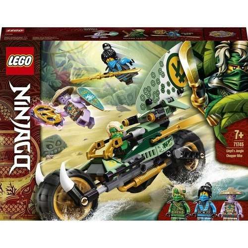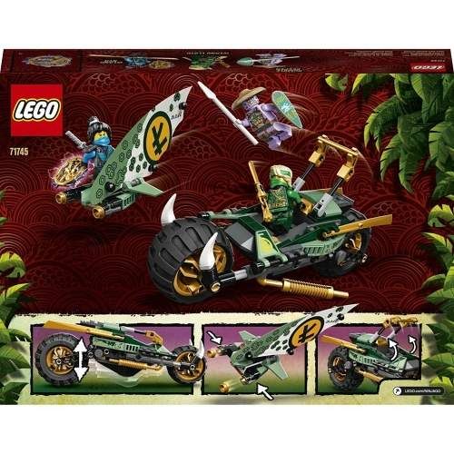 „Se stavebnicí Lloydova motorka do džungle si děti mohou přehrávat akční scény z TV seriálu NINJAGO. Vozidlo 2 v 1 je vybaveno 2 vystřelovači, otevíracím kokpitem, funkčním pérováním a odnímatelným letounem, který lze použít jako surfovací prkno. Stavebnice NINJAGO odlepí děti od obrazovek a přispívají k rozvoji klíčových dovedností prostřednictvím hraní – a to o samotě, nebo s kamarády. Kolekce akčních ninja modelů, jako jsou draci, roboti a vozidla, dětem otevírá úžasný svět plný nekončících dobrodružství.“ „• Ninja stavebnice s motorkou a NINJAGO minifigurkami Lloydem a Nyou, se kterými si děti užijí napínavá dobrodružství v džungli. • Ohromující ninja vozidlo 2 v 1 pro spoustu herní akce. Model nabízí funkční odpružení a odpojitelný letoun. • Obsahuje 3 minifigurky: ostrovního Lloyda, ostrovní Nyu a strážce hřmotu. • Model měří přes 16 cm na výšku, 21 cm na délku a 6 cm na šířku – perfektní kompaktní velikost pro hraní doma i na cestách. • Skvělý dárek pro nadšené fanoušky světa NINJAGO® od 7 let.“