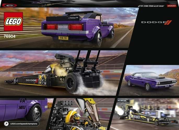 "Fandové rychlých vozů budou doslova zbožňovat stavebnici Mopar Dodge//SRT Top Fuel Dragster a 1970 Dodge Challenger T/A (76904) od LEGO® Speed Champions. Repliky, které se pyšní spoustou realistických detailů, zaručí obohacující stavitelský zážitek, a navíc jsou skvělé jak k závodění, tak na výstavku. Zábava spočívá v detailech! > Sběratelské modely aut v této stavebnici jsou vybavené širokým podvozkem, což jim umožňuje pojmout spoustu detailů. 2 minifigurky jezdců se závodnickou výbavou a helmami pak slibují nezapomenutelnou závodní akci! Prožijte akci v den závodu! > Stavebnice LEGO Speed Champions přináší mini verze nejznámějších a nejvýkonnějších vozidel. Děti a fandové do aut tak mohou sbírat, stavět a vystavovat oblíbená vozidla nebo se mohou sejít s kamarády a uspořádat vzrušující závod replik z řady Speed Champions." „• Impozantní repliky 2 vozů Dodge k přehrávání závodů a na výstavku. • Ve stavebnici najdete repliky vozů Mopar Dodge//SRT Top Fuel Dragster a 1970 Dodge Challenger T/A • 2 sběratelské modely aut ke stavění, vystavení a přehrávání vzrušujících závodů. • Skvělý narozeninový nebo jakýkoli jiný dárek pro holky a kluky ve věku od 8 let. • Sada je robustní, takže ji klidně můžete dát do batohu, aby si s ní děti mohly hrát na cestách. • Tato stavebnice se obejde bez baterií – pohání ji dětská představivost! • Součástí je srozumitelný a podrobný návod na stavění pro oba modely. • Prožijte vzrušení ze závodní dráhy s řadou LEGO® Speed Champions. • LEGO® kostky jsou vyhlášené svou kvalitou již od roku 1958. • Každá stavebnice řady LEGO® Speed Champions je testována s ohledem na maximální bezpečnost.“