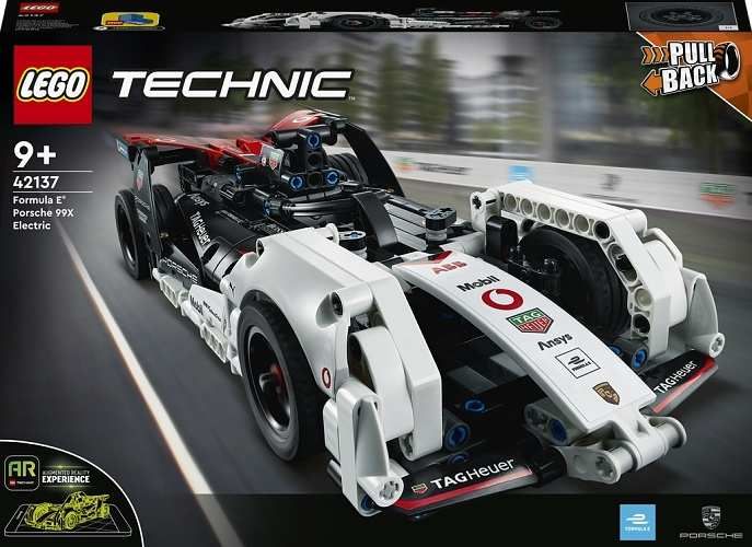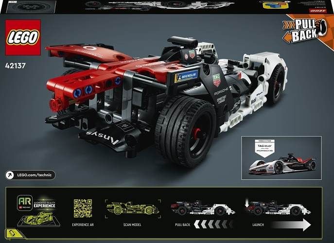 • Postavte si ikonu závodů Formula E® – Fanoušci motosportu si sadu Formula E® Porsche 99X Electric (42137) od LEGO® Technic nepochybně zamilují • Rozšířená realita – Stáhněte si aplikaci s rozšířenou realitou LEGO® Technic a naskenujte model. Poté auto natáhněte, odpalte ho nohou a sledujte, jak si povede ve strhujícím závodu • Natahovací funkce – Díky 2 natahovacím motorům mohou děti odhadnout, kolik energie do auta vloží předtím, než jej vypustí na závodní dráhu pomocí odpalovače • Zábavné hraní – Natahovací funkci lze kombinovat s aplikací s rozšířenou realitou LEGO® Technic. Naskenujte model v aplikaci, natáhněte ho rukou, odpalte ho nohou a sledujte, co se stane • Autentický design – Tento model Porsche věrně vystihuje skutečný závodní vůz Formula E® Porsche, včetně log sponzorů • Ideální pro všechny fanoušky závodů Formula E® od 9 let – Tato replika vozu Porsche poslouží jako super dárek pro děti, které milují závodní auta Porsche, sérii Formula E nebo modely pro rozšířenou realitu • Perfektní velikost na hraní – Tento natahovací model závoďáku Porsche pro děti měří přes 6 cm na výšku, 31 cm na délku a 12 cm na šířku • Učení hrou – Řada LEGO® Technic nabízí pokročilé stavebnice pro fanoušky LEGO, kteří jsou připraveni na další stavitelskou výzvu • Vysoké standardy kvality – Kostky LEGO® Technic splňují ty nejpřísnější standardy, díky čemuž jsou dílky konzistentní, kompatibilní a vždy dobře drží • Testováno na maximum – Součástky LEGO® Technic pouštíme na zem, zahříváme, drtíme, kroutíme a analyzujeme, abychom zajistili, že splňují přísné globální bezpečnostní standardy