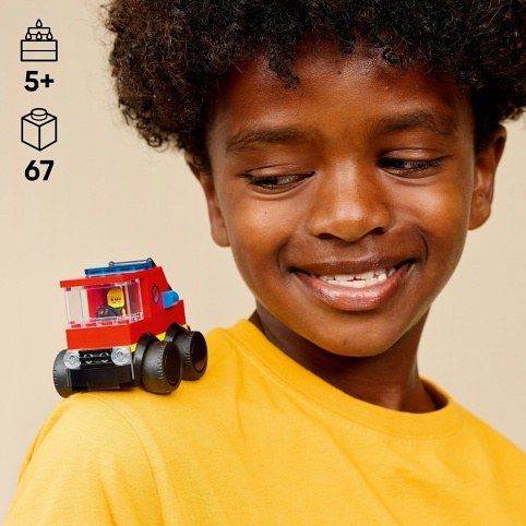 LEGO® 60482 City Autíčka – Hasičské auto je malá stavebnice určená dětem od 5 let, která nabízí zábavný vstup do světa hasičských dobrodružství. Tento model hasičského auta je sestaven z 67 dílků a disponuje jednoduchým, ale výrazným designem ve výrazné červené barvě, doplněné o černé gumové pneumatiky a průhledné části představující okna kabiny. Hasičské auto má na střeše modré majáky a na bocích emblémy s hasičským znakem, což podtrhuje jeho tematickou autentičnost. Model je vybaven pohyblivými prvky, jako jsou velká kola s gumovým povrchem, která umožňují snadný pohyb po různých površích, a výsuvný žebřík, který lze nastavit pro různé záchranné situace. Střecha vozidla je odnímatelná, což umožňuje snadný přístup k interiéru, kde se nachází místo pro minifigurku hasiče. Tato minifigurka je stylizována klasicky s žlutou hlavou a helmicí, černým oblečením a jednoduchým usměvavým výrazem, což je ideální pro malé děti. Stavebnice podporuje kreativní hraní a rozvíjí jemnou motoriku a představivost díky intuitivním stavebním krokům, které jsou navíc dostupné v aplikaci LEGO Builder. Ta umožňuje dětem model přibližovat, otáčet ve 3D a sledovat postup stavění, což usnadňuje samostatné skládání a zvyšuje zábavu. LEGO City Autíčka – Hasičské auto je součástí série LEGO City Rides, kterou lze doplnit dalšími vozidly a tím rozšířit možnosti hry. Celkově tato stavebnice představuje ideální dárek pro malé stavitele, kteří mají rádi autíčka i hrdiny v podobě hasičů. Kompaktní velikost modelu umožňuje snadné přenášení a hraní doma i na cestách. Díky kombinaci jednoduchosti, atraktivního designu a funkcí je tento set skvělou volbou pro rozvoj dětské kreativity a zábavy.